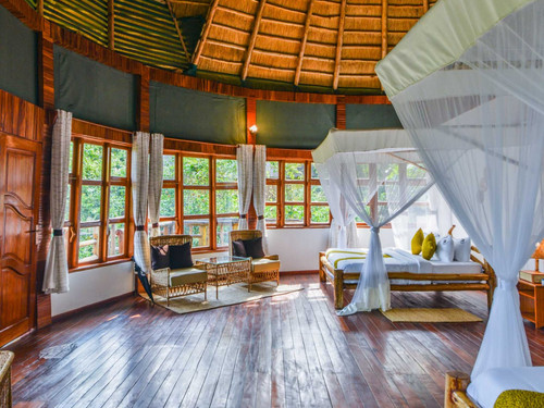 Kibale National Park is one of East Africa’s most important chimp strongholds. This forested park is home to roughly 1,000 of these charismatic apes, the largest population in the region, and the chances of a close-up sighting are excellent. Even if you don't manage to see chimps, listen out for their unforgettable pant-hoot call as it resonates through the forest interior. Other wildlife you might encounter in Kibale includes monkeys such as Uganda mangabey, Uganda red colobus and red-tailed monkey, and an astounding 370 bird species.